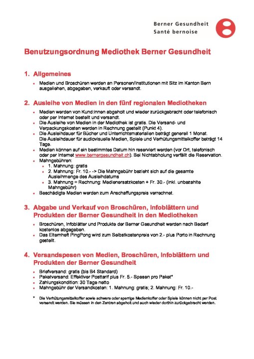 Benutzungsordnung Mediothek Berner Gesundheit
