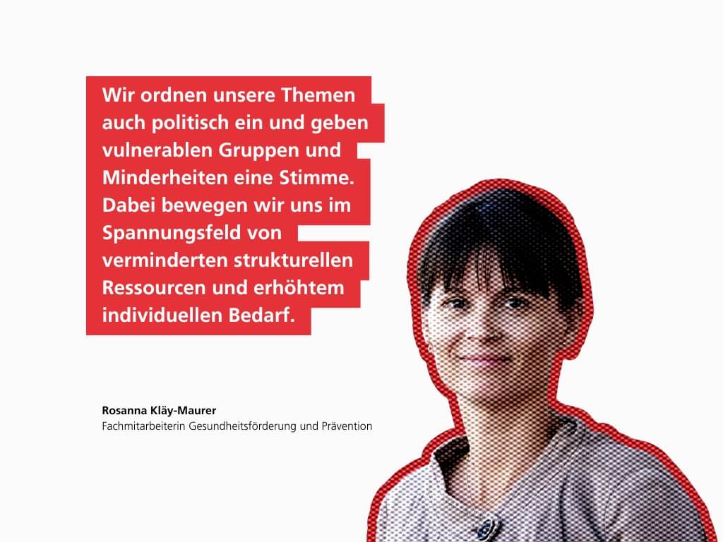 Wir unterstützen Menschen mit niederschwelligen Angeboten zu Prävention, Suchtberatung und Aufklärung, gesund aufzuwachsen, gesund zu bleiben oder gesund zu werden und setzen uns für gesundheitsförderliche Rahmenbedingungen ein.